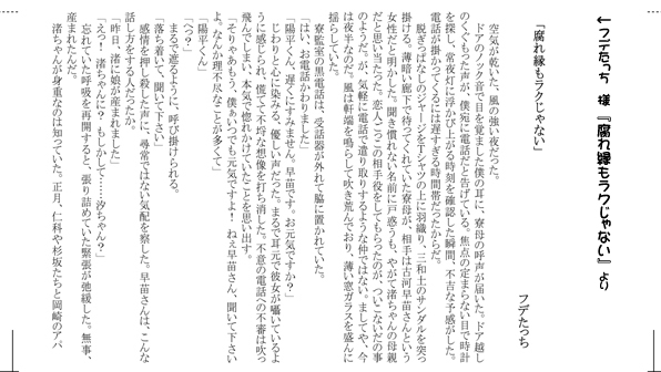 私の漫画は内容がせかせかしていて余韻がないなぁ・・・と1人反省しつつ不安でもありました。ですが“理想の”と言ってくださったおかげで、やっと「あぁ、描いて良かった」と思えるようになりました。こちらこそお礼を言いたいと思います。ありがとうございました。